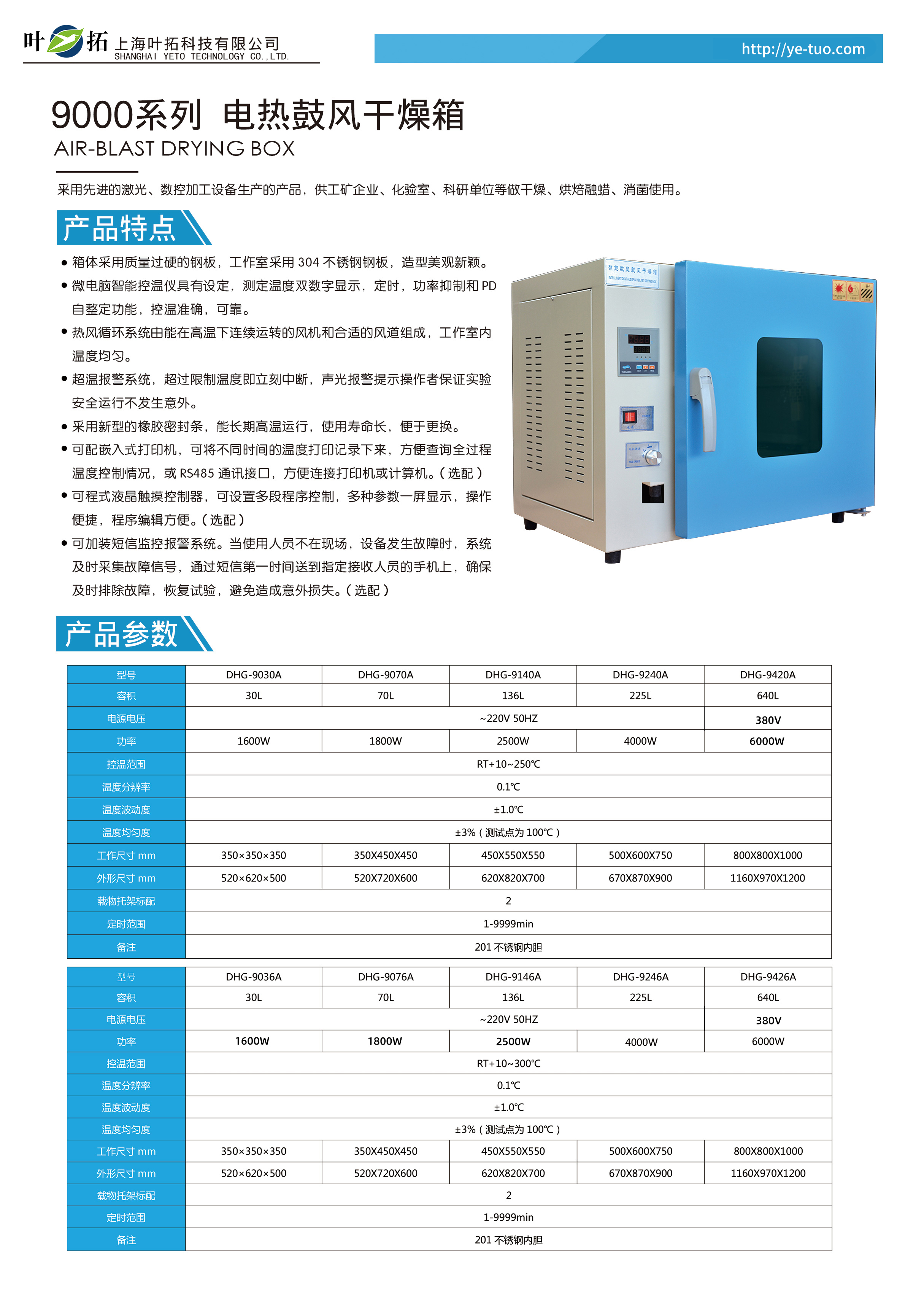 葉拓DHG系列電熱鼓風(fēng)干燥箱產(chǎn)品特點