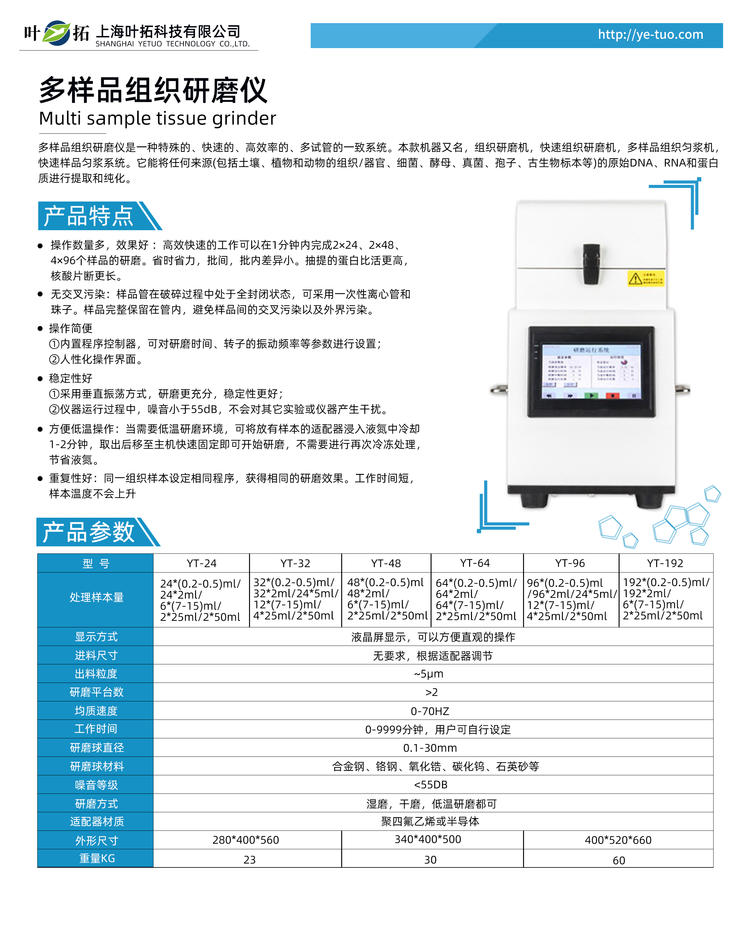 葉拓YT系列組織研磨儀產品特點:
